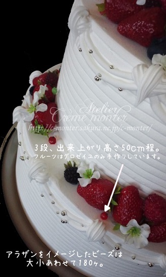 上の画像は現在仕上げ途中のオーダーケーキ。